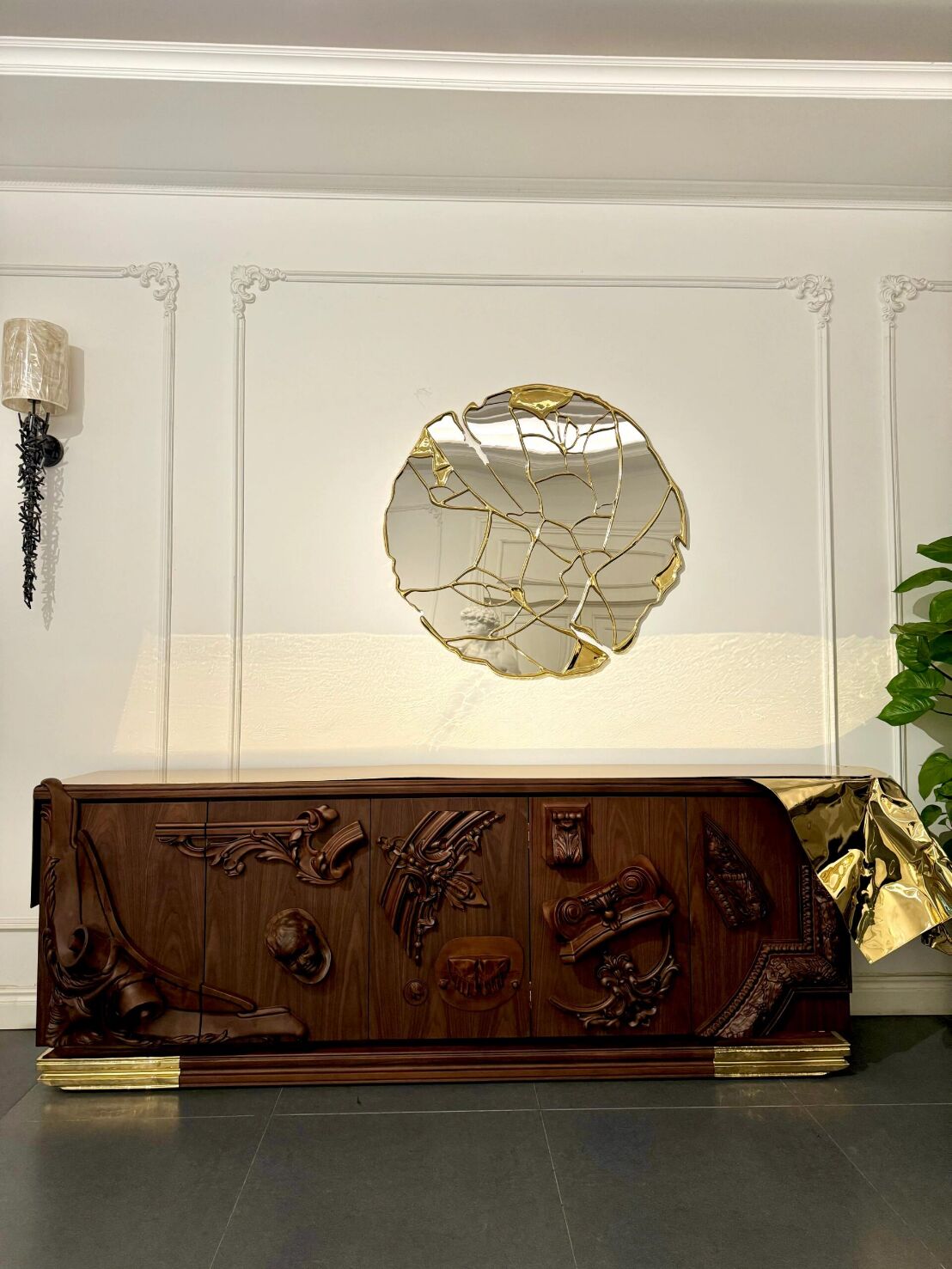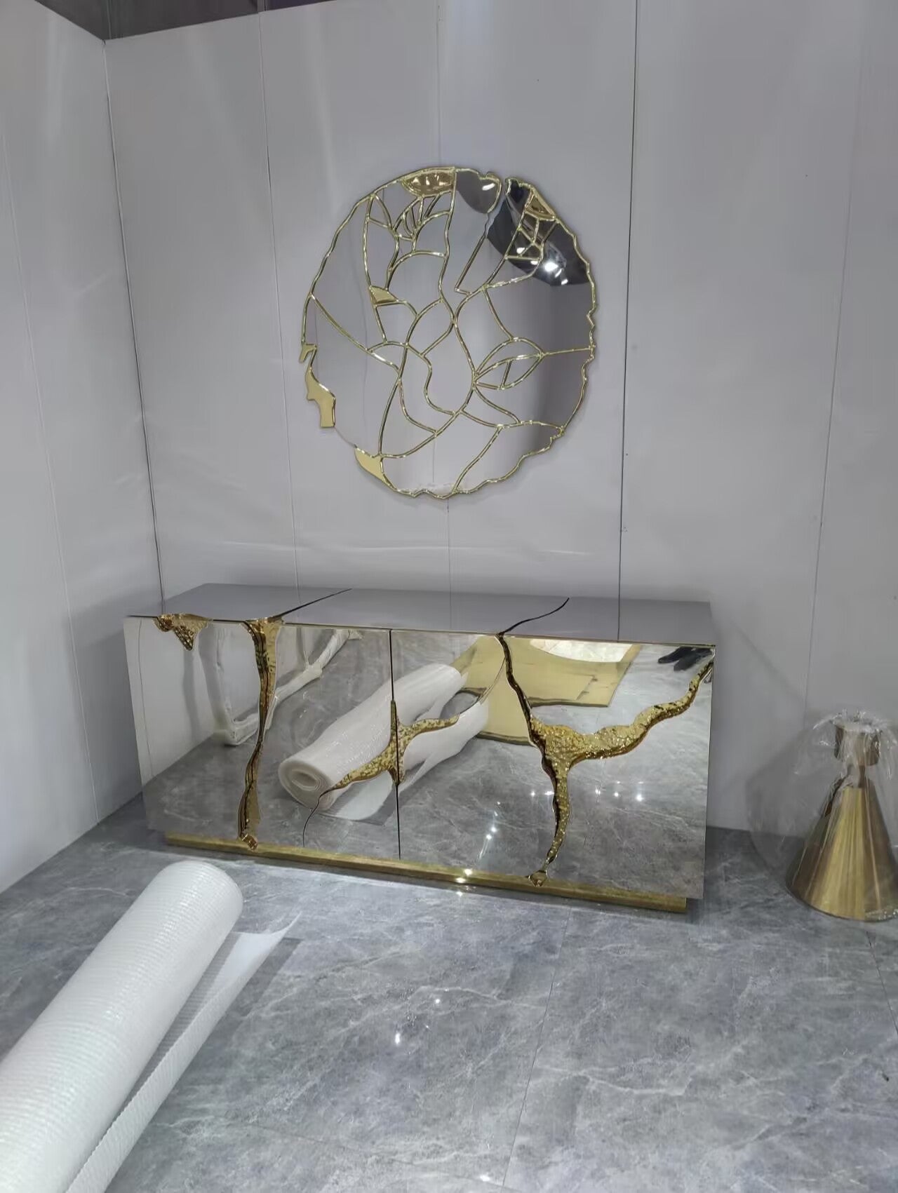 Material: 304 stainless steel +glass Elevate Your Space with Timeless Modernity This exquisite circular wall mirror redefines contemporary elegance through a masterful fusion of fractured artistry and refined craftsmanship. Each meticulously arranged glass fragment captures and refracts light, creating a dynamic interplay of reflections that transforms any room into a gallery of modern sophistication. The golden chrome plating adds a touch of understated luxury, while the high-gloss varnish finish ensures durability and a seamless, luminous sheen—perfect for those who seek both aesthetic brilliance and enduring quality. Designed for Discerning Tastes   • Statement of Individuality: The deliberate asymmetry of the glass shards celebrates imperfection as art, appealing to clients who value uniqueness and narrative in decor. It’s a conversation starter for creative professionals and design enthusiasts alike. • Functional Luxury: Beyond its visual impact, the mirror’s gold chrome edges and protective varnish resist tarnishing, making it ideal for humid environments like upscale bathrooms or spa-inspired retreats. For those who dare to redefine boundaries, this piece isn’t just a mirror—it’s a testament to how brokenness can birth brilliance.  |