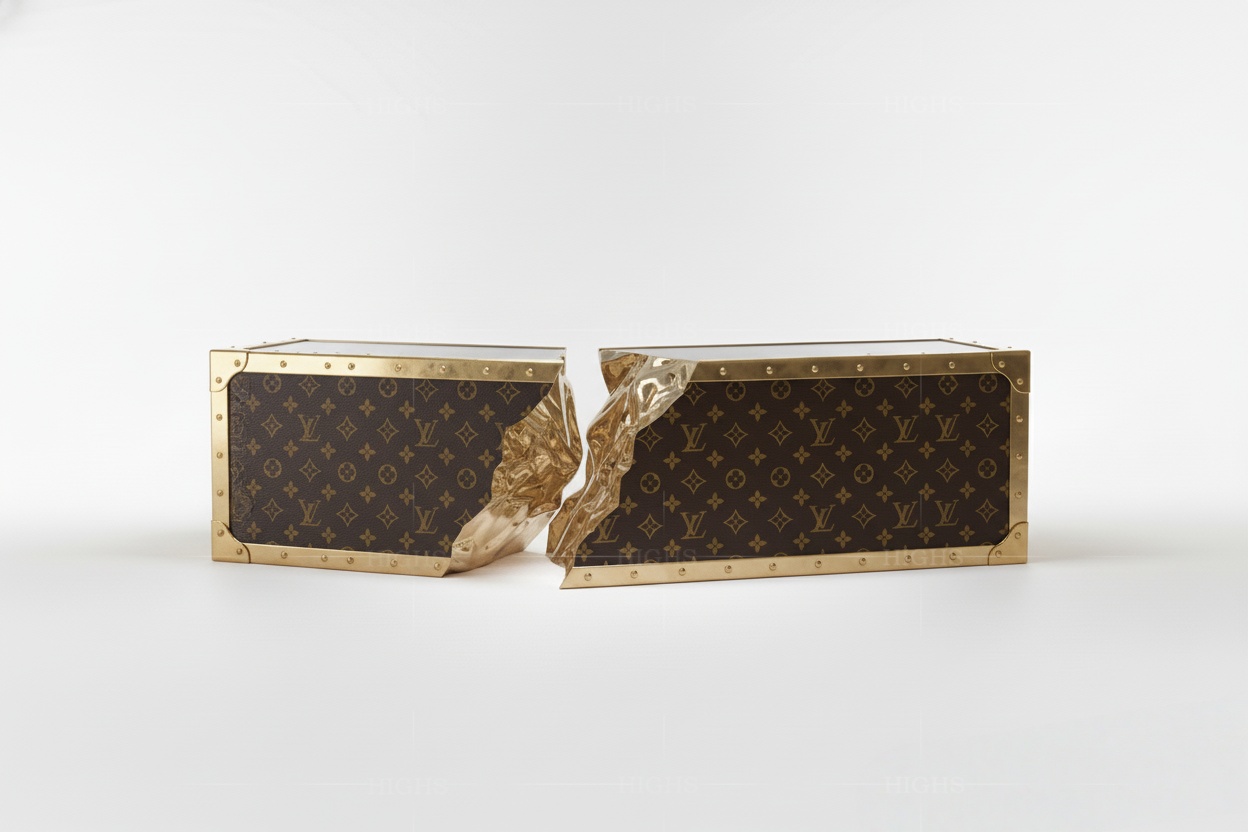 However, true modern luxury dares to challenge tradition. Thus, the desk is masterfully segmented, introducing a panel with a textured, folded-metal effect. This element is our coup de théâtre—a deliberate rupture. It represents the dynamic present: innovation, resilience, and a forward-thinking spirit. The polished gold beveling and rivets are the sutures that bind these two worlds together, adding a jeweler's touch of refinement and durability.