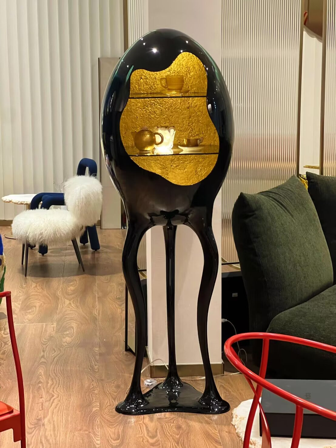 Customer Value: An Asset-Level Investment Beyond Storage 1. Aesthetic Premium of Spatial Sculpture The scratch-resistant and high-gloss fiberglass shell becomes more refined over time, the black lacquer finish serving as a backdrop for various works of art. The gold leaf interior is not mere ostentatious decoration, but rather, through the principle of light refraction, creates an illusion of depth in a limited space, especially suitable for enhancing the visual scale of compact apartments. 2. The Intangible Accumulation of Social Capital The egg-shaped structure eliminates the sharp edges of traditional wine cabinets, facilitating the flow of people during conversations. The internal gold leaf creates a "halo effect" under warm light, giving even ordinary wine labels a sense of preciousness. User feedback: During parties, it naturally becomes a hub for interaction, and even non-drinkers stop to admire its aesthetic design.